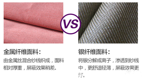 经过专家对防辐射服银纤维和金属纤维屏蔽性能方面的检测发现,两种不同的材质在屏蔽性能方面没有明显的差别,均能够屏蔽生活中较为复杂的电磁辐射。但专家表示防辐射服内部纤维的含量决定其屏蔽性能的高低,纤维含量越高屏蔽性能越好,像银纤维100%含量的防辐射服能够衰减99.9999%的电磁辐射。